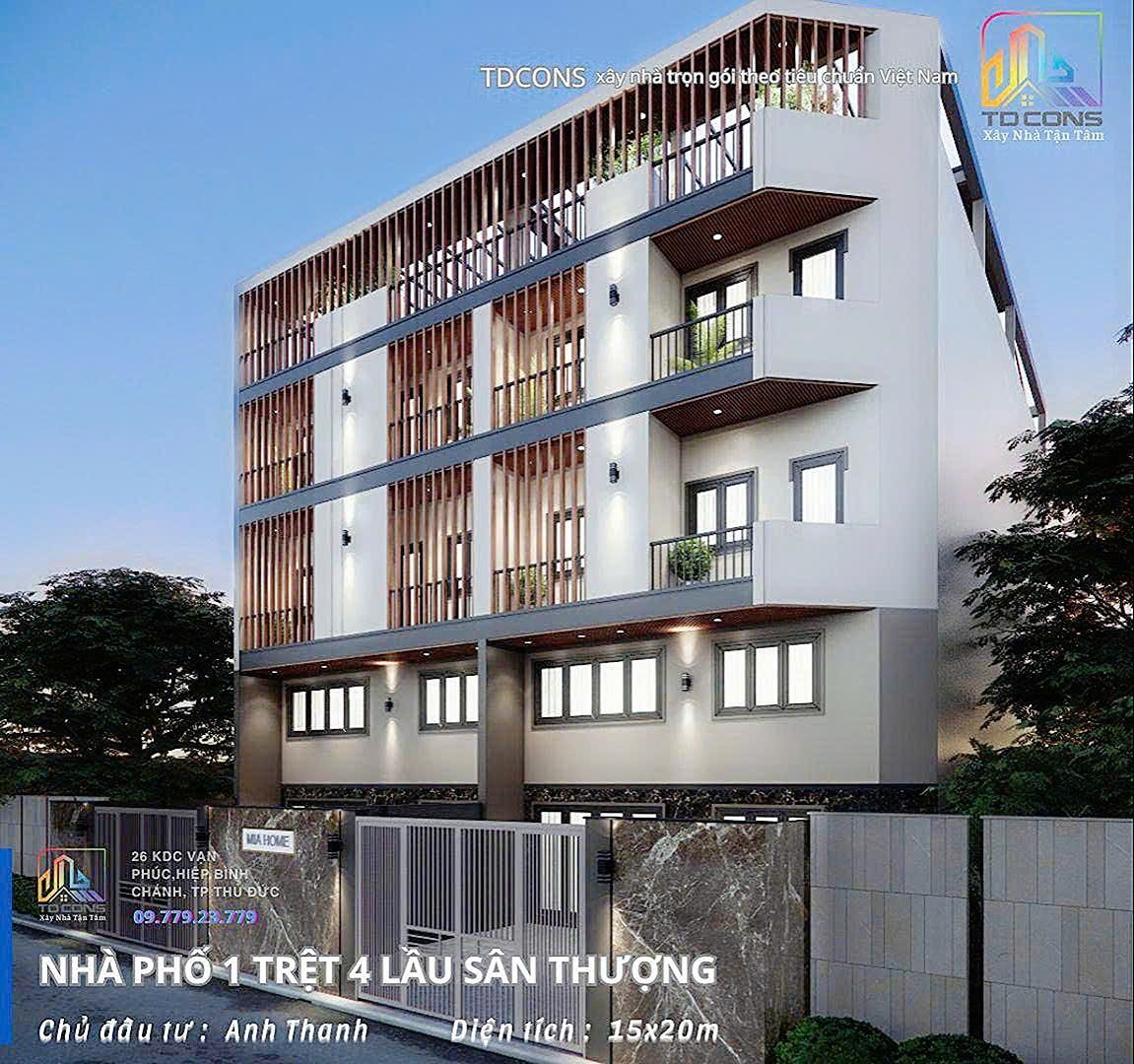 • Thiết Kế: 1 Trệt 4 Lầu